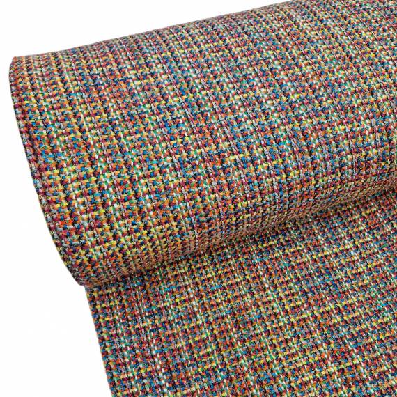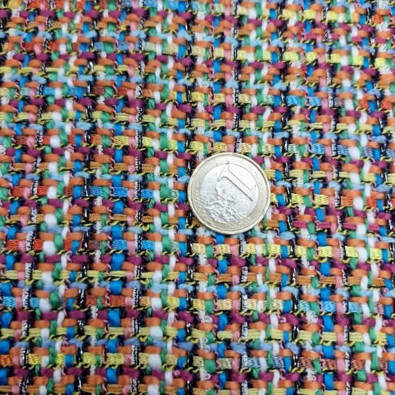 Jacquardjersey hat eine glatte Vorderseite, rechts gestrickt mit dem Muster. Die Rückseite ist in der Grundfarbe mit einem verwischten Muster erkennbar. Jaquardjersey ist im allgemeinen eher fest und hat immer ein Muster. Deswegen eignet sich Jacquardjersey ideal für Nähprojekte wie: