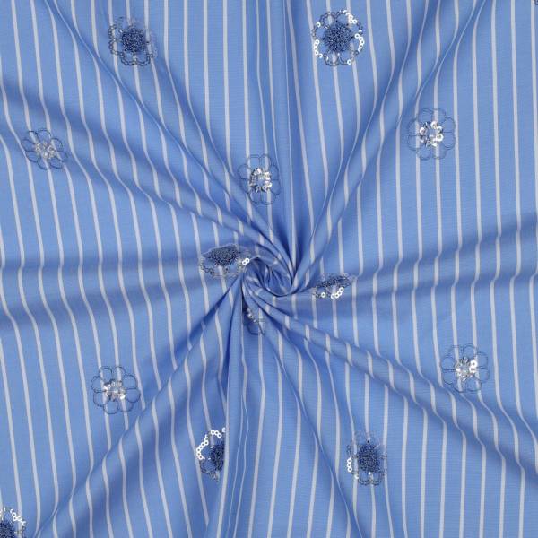 Pailletten Streifen Webware Baumwolle blau