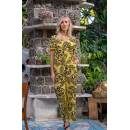 Blätter Leinenoptik Viskose Leinen ocker