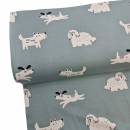 Man kann aus diesem Stoff sehr schöne Mützen, Shirts, Kleider, Sweatshirts, Pumphosen und Jogginghosen nähen.