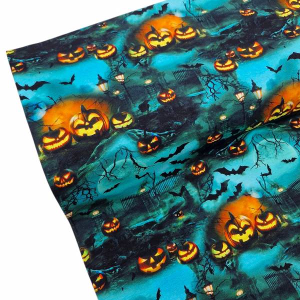 Halloween Kürbis Baumwolljersey blau