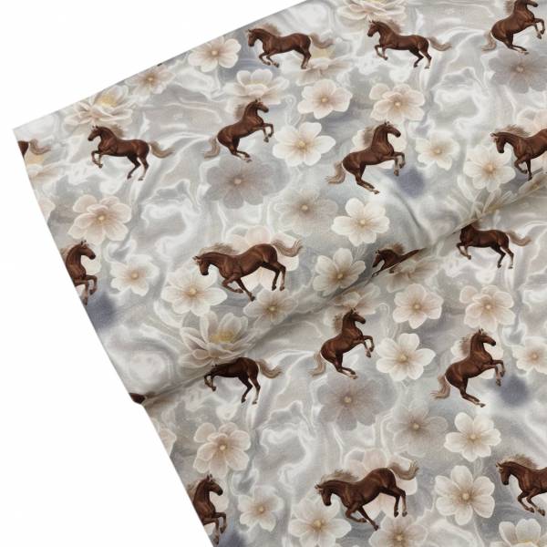 Pferde Baumwolljersey Digitaldruck ecru