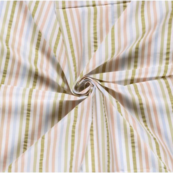 Seersucker hat eine Kreppstrucktur und wirkt dadurch dreidimensional und zerknittert, Seersucker ist sehr strapazierfähig und braucht nicht gebügelt zu werden. Die Strucktur entsteht beim weben, die Kettfäden werden mit unterschiedlichen Spannungen zum Seersucker gewebt.